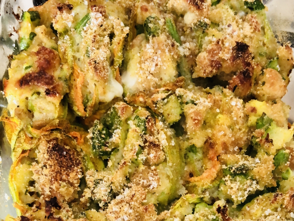 Oggi pratichiamo l'italiano in cucina con una ricetta veramente speciale: i fiori di zucca ripieni di ricotta e cotti al forno.