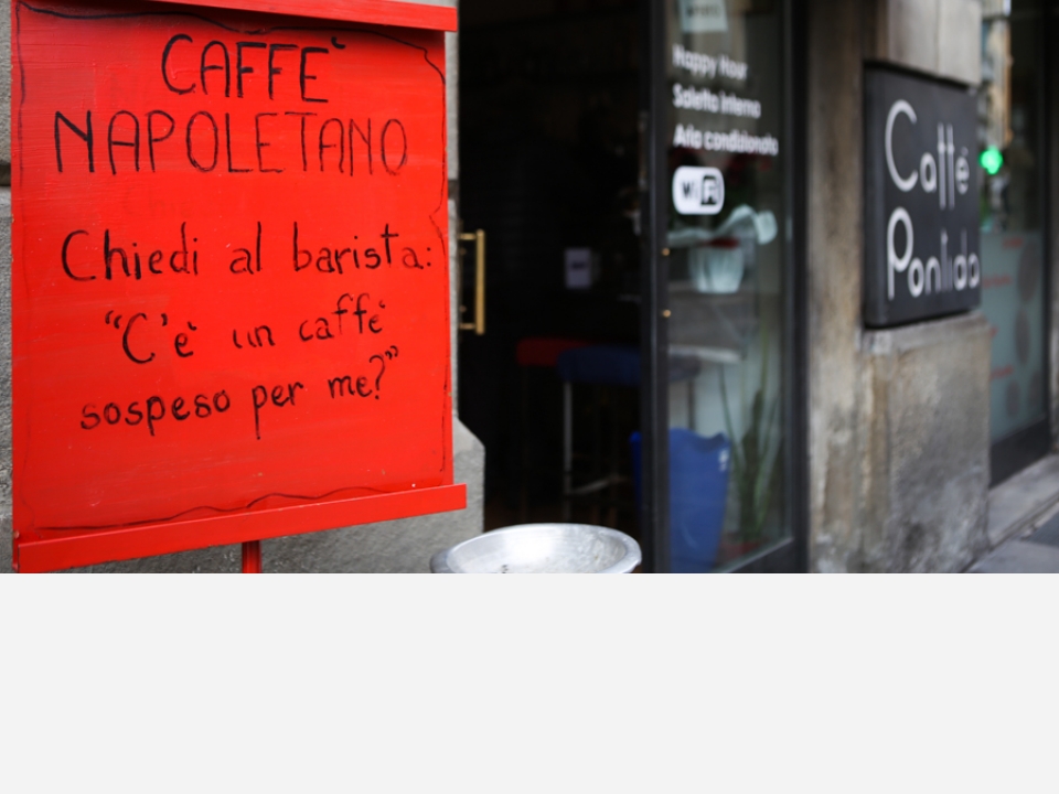 L' usanza del caffè sospeso è nata a Napoli durante la seconda guerra mondiale. In questo periodo molto difficile, chi poteva pagava alla cassa il proprio caffè e ne aggiungeva un altro da lasciare in sospeso, cioè destinato a chiunque lo chiedesse. In questo modo, quando una persona bisognosa entrava in un bar poteva chiedere se c'era un caffè sospeso, se la risposta era affermativa riceveva un caffè come se gli fosse stata offerta dal primo cliente.