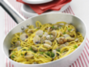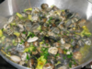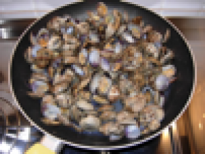 4. Cuocere le vongole nella padella con l’olio e l’aglio, le vongole si aprono dopo pochi minuti