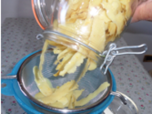 D. mettere poi le bucce in un vaso di vetro e versare l’alcool fino a ricoprirle.