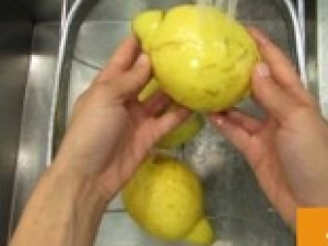 C. sbucciare i limoni con molta cura, facendo attenzione a tagliare solo la parte gialla