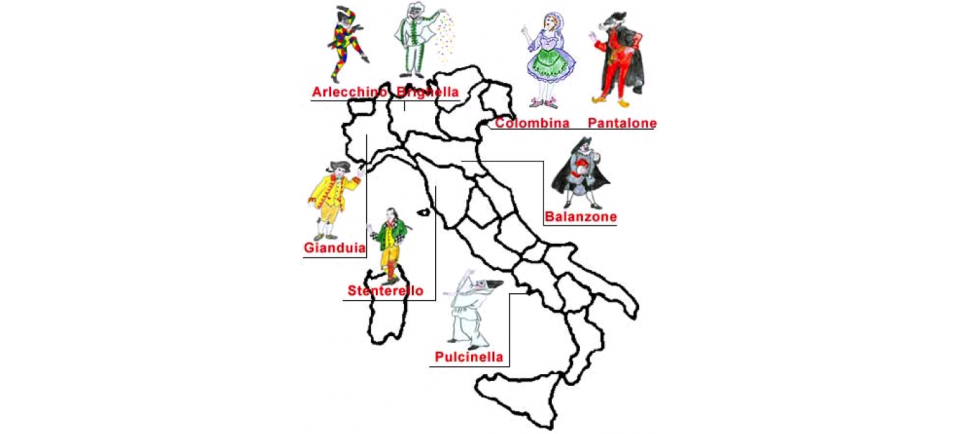 Completa il testo con i nomi delle maschere che vedi nell'immagine: