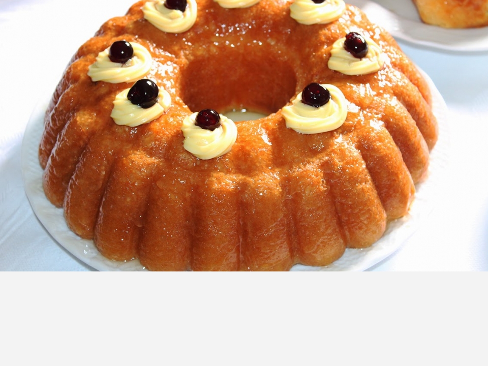 9. Pour and spread the batter evenly into the greased mold. Bake at 350°F (180°C) for 25 minutes. Remove from oven and allow to cool for five minutes before turning out onto a serving plate.
