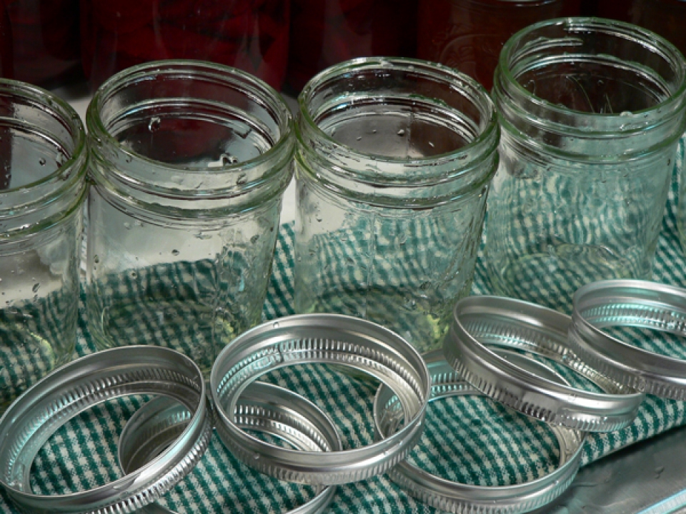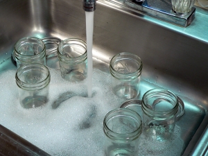 Rinse the jars and bands and set them aside for the moment.