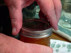 Finger tight.   All the canning recipes say to tighten the band down just finger tight.  That means, just snug it down to the top without using any extra force.  Don’t give it all you’ve got to get it tight.  Just a gentle snug down and it’s good to go.